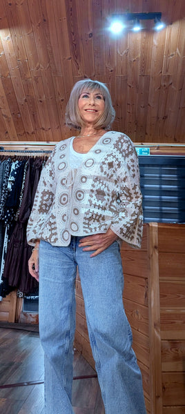 Piper Crochet Cardigan – Ivory And Beige Boho Style