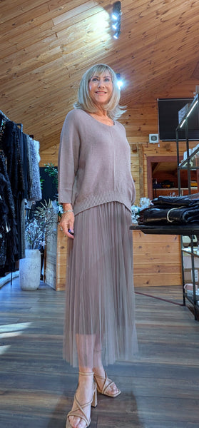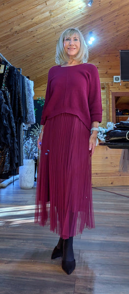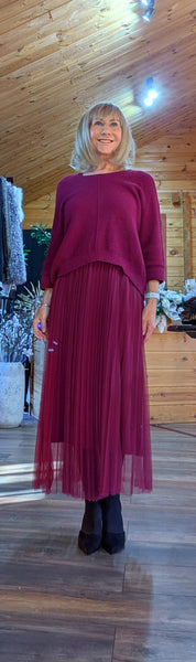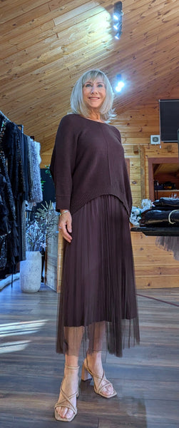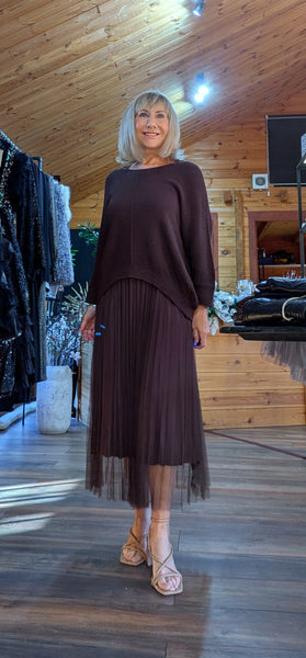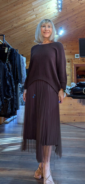 Introducing Hettie – a beautifully layered two-piece dress set that perfectly blends texture, comfort, and sophistication. This stunning set features a soft knit top paired with a flowing pleated skirt, creating an elegant silhouette that moves gracefully with every step.
