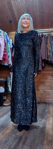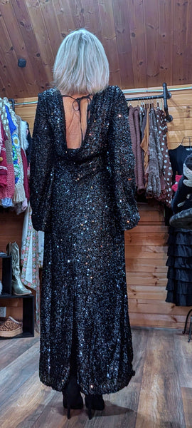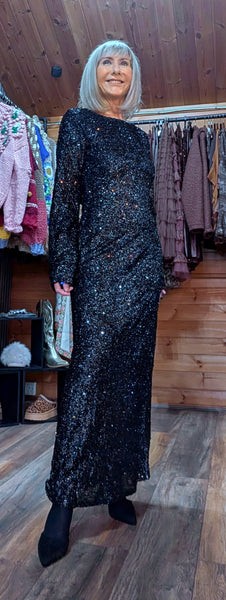 Black sequin slinky dress
