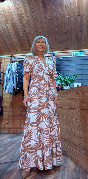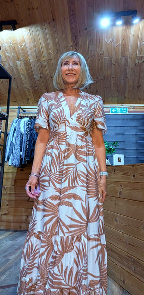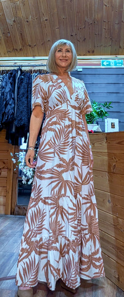 In a soft beige with a striking leaf print, Anastasia is perfect for everyday wear, holidays, brunches out or relaxed summer occasions. Style with sandals for daytime or dress it up with wedges and jewellery for evening out.