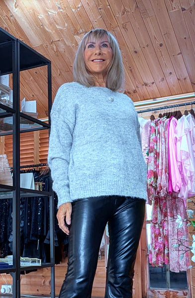 Say hello to Marty – the super soft sweater you’ll be living in this sparkly season. In a chic light grey, Marty features adorable bow details with a touch of silver sparkle that makes it festive yet versatile.
