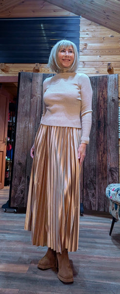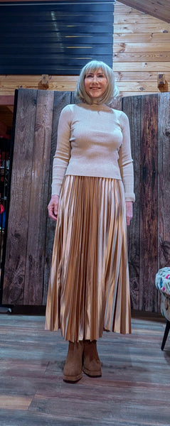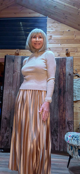 Say hello to Sandy – your new go-to fitted roll-neck for the season. In a beautiful soft gold with a delicate shimmer woven through, Sandy elevates even the simplest outfit with a touch of chicness.