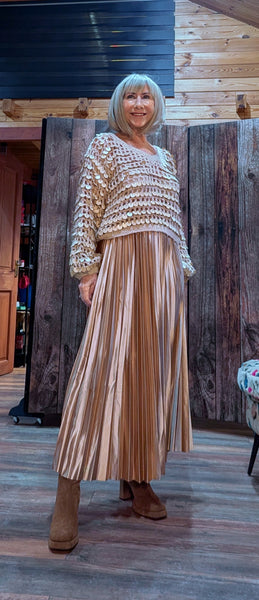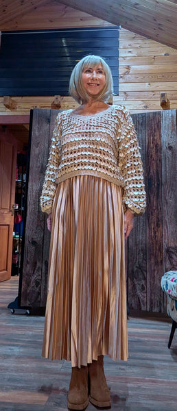Meet Sasha – the gold sparkle knit that brings instant glamour to any outfit! Covered in chunky shimmering sequins, Sasha is the perfect casual chic and dressy evening sparkle.