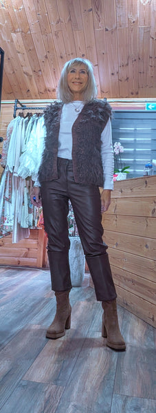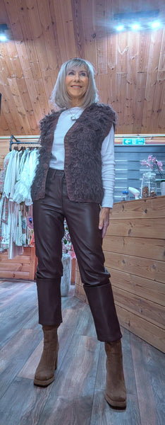 Meet Adeline – a stylish sleeveless fringe cardigan that’s as versatile as it is chic. Available in rich taupe or chocolate, this funky button-up vest is perfect for layering through autumn and winter.