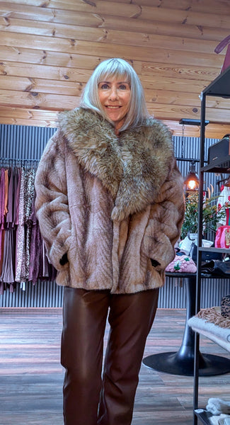 Introducing Charlotte – the perfect blend of luxury and style. This stunning faux fur jacket in a soft taupe tone features full sleeves, elegant clasp button fastenings, and a beautifully plush feel that's so sophisticated.