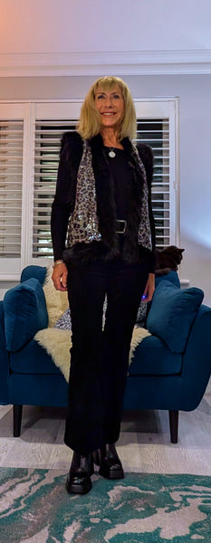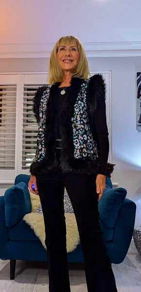 Meet Ella – the layering piece your autumn/winter wardrobe has been waiting for. This adorable sleeveless cardigan/gilet in Aqua & Black or Black Original Animal Print is finished with a super-soft faux fur making it both stylish and chic. Perfect for throwing over knits, tops, or dresses, Ella is as versatile as is stylish.