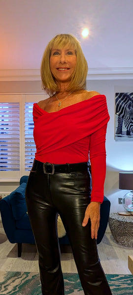 Meet Elle – the ultimate staple for layering or styling solo. Available in four classic shades (red, ivory, beige, and black). A Bardot bodysuit that offers a flattering fit that works beautifully under skirts, trousers, or cardigans. Made in a soft stretch blend of elastane and polyester, it hugs your shape, has a cross over bust and sits perfectly on or off the shoulder.