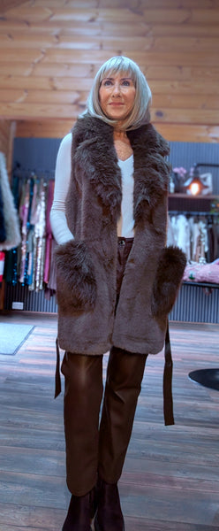 Chocolate faux fur sleeveless jacket