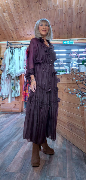 Deep coffee-coloured floaty dress with under slip