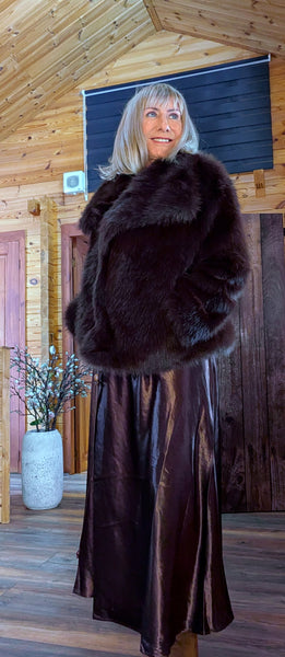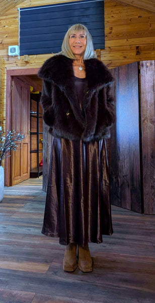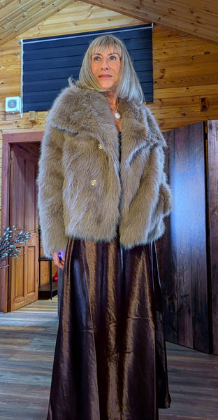 Wrap yourself in luxury with Guinevere – a fabulous faux fur jacket designed to elevate your autumn and winter wardrobe. Available in a rich chocolate or soft taupe, Guinevere is double breasted with a sleek snap-button closure, giving it a polished yet minimalist look.