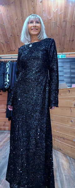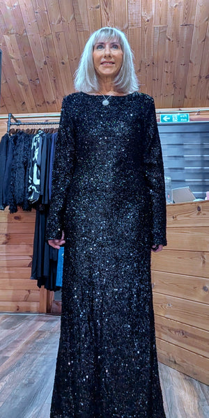 Black sequin slinky dress