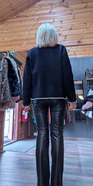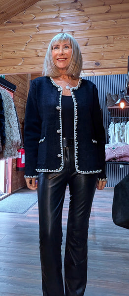 Melissa Black Pearl Trim Jacket – Sequin Detail & Chunky Buttons