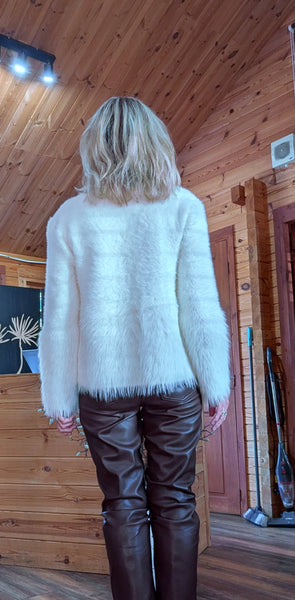A stunning ivory faux fur jacket with beautiful diamante buttons.